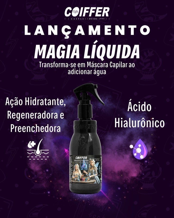 A MAGIA LÍQUIDA COIFFER 250ML TEM A FINALIDADE DE PROTEÇÃO DA FIBRA CAPILAR, EVITANDO A ABERTURA DA CUTÍCULAS, RETENDO O TRATAMENTO NO INTERIOR DOS FIOS. TRANSFORMA-SE EM MÁSCARA CAPILAR AO ADICIONAR ÁGUA.