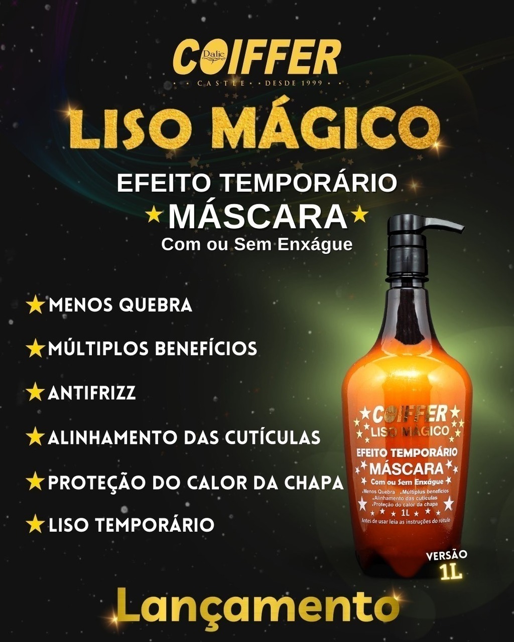 Desperte a magia do seu cabelo com a Máscara Liso Mágico da Coiffer Cosméticos, agora também na versão de 1 litro!✨